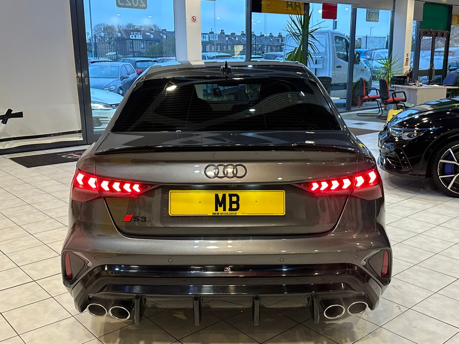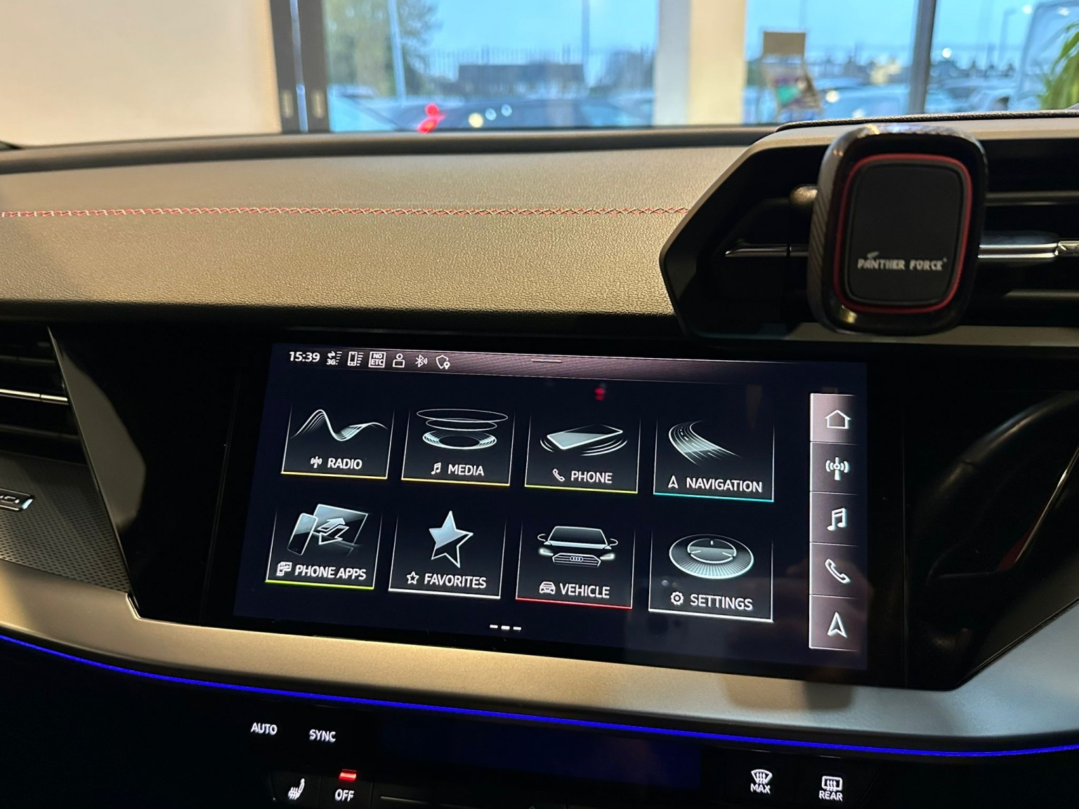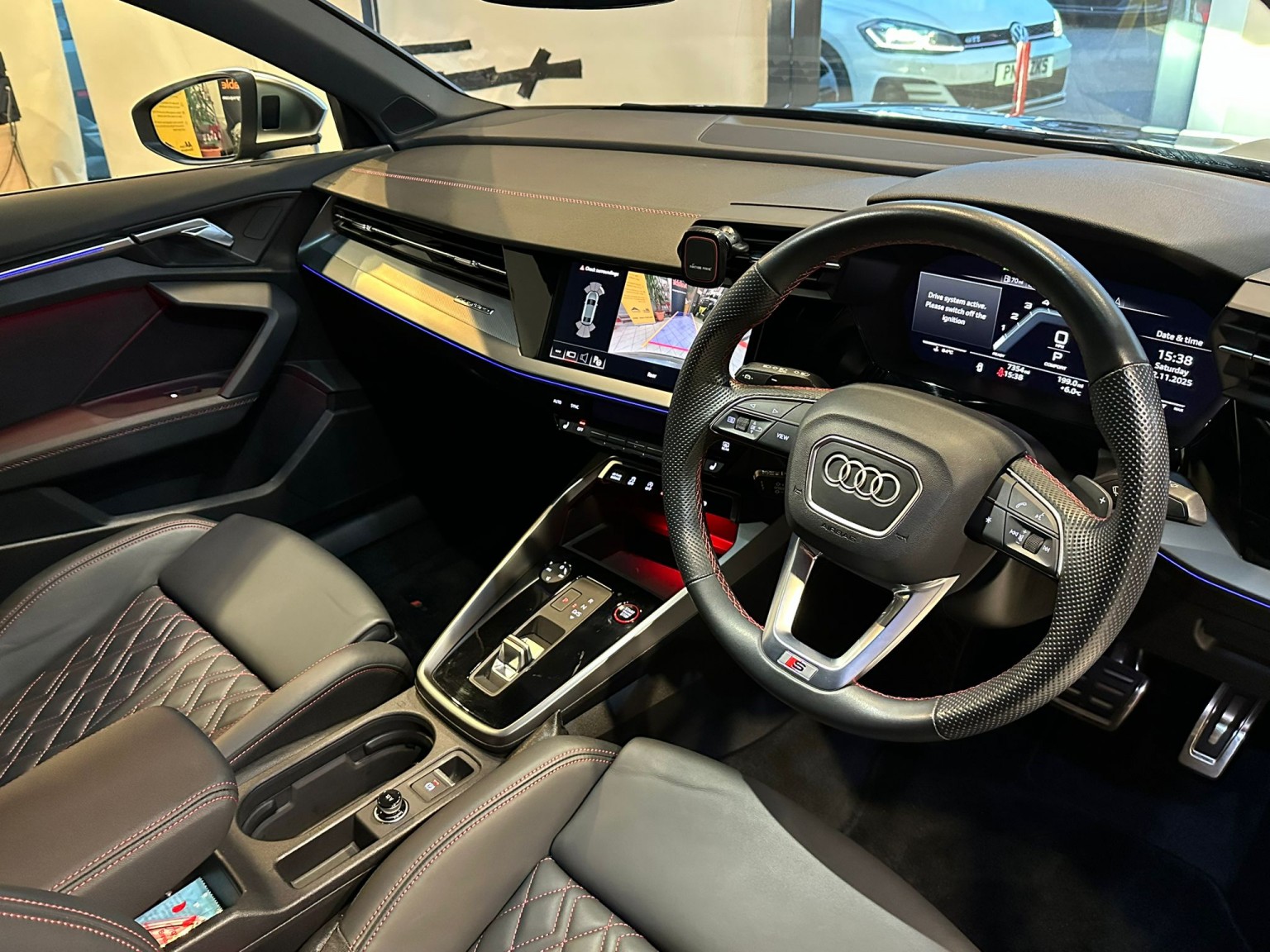 The Audi S3 comes packed with premium features, including a powerful 2.0-litre TFSI petrol engine with quattro all-wheel drive and a smooth 7-speed S tronic automatic gearbox, delivering sharp performance and confident handling. Its sporty exterior is highlighted by a bold Single frame grille, quad exhausts and striking LED headlights with selectable light signatures. Inside, the S3 offers high-quality sports seats, a flat-bottom steering wheel, ambient lighting and a refined cabin finished in premium materials. Technology is a strong point too, with a 10.1-inch MMI touchscreen, Virtual Cockpit digital display, Apple CarPlay and Android Auto, plus optional upgrades such as a Sonos 3D sound system and advanced driver assists including adaptive cruise control, lane-keeping assist and park assist. Combining performance, comfort and modern tech, the S3 delivers a well-rounded premium driving experience.